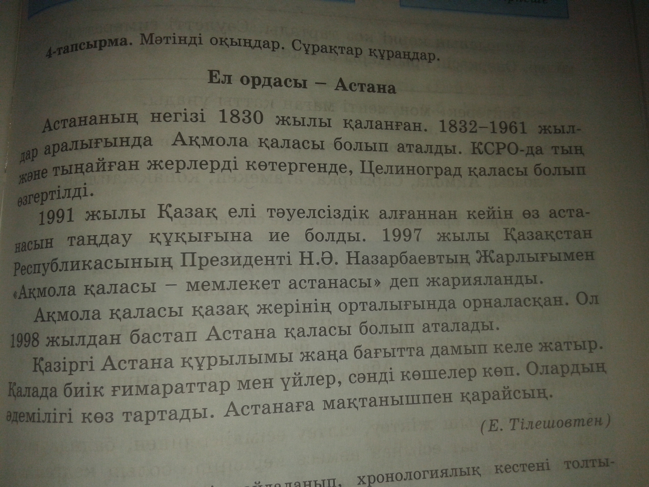 Нужно по этому тексту составить 5 вопросов ( по казахски вопросы) .