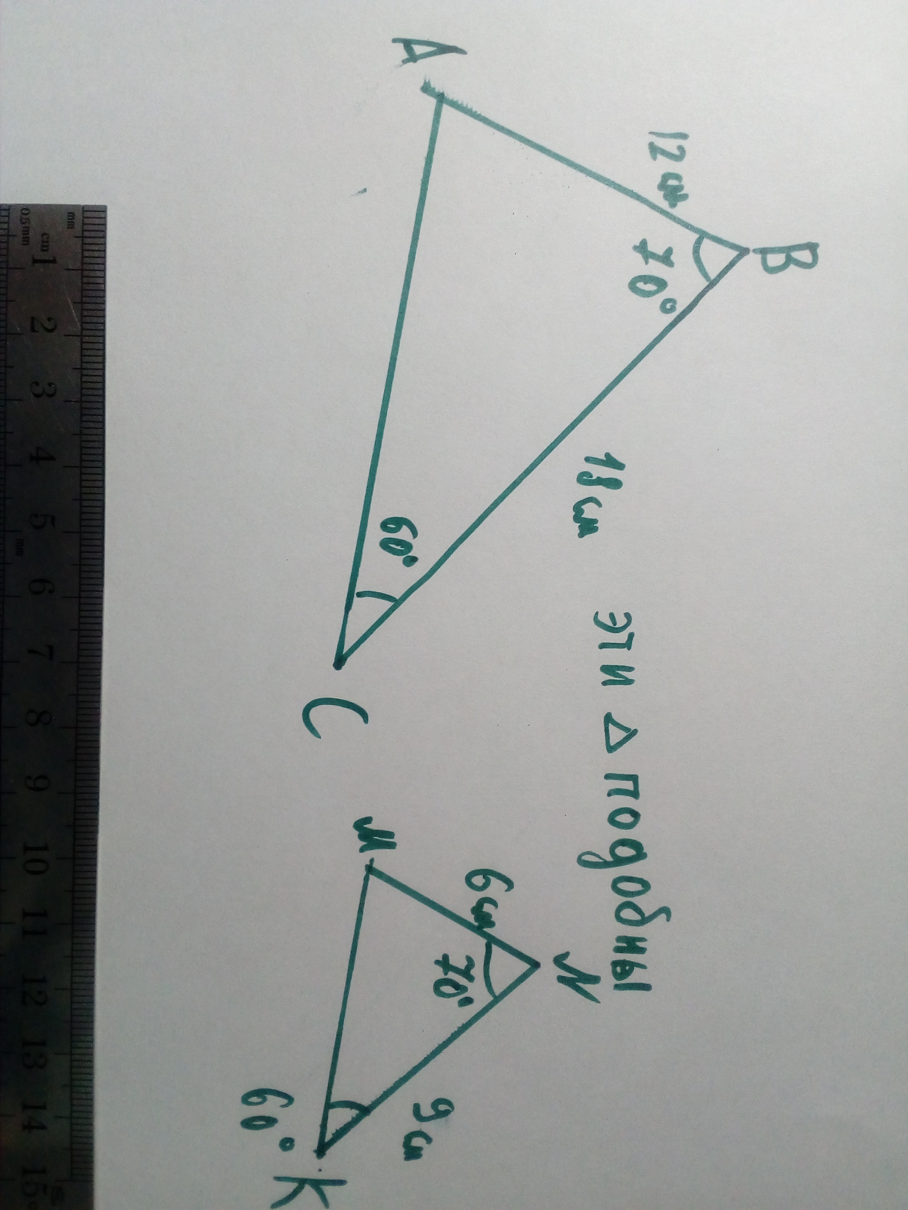 треугольник AВС, АВ =12см, BС=18см, угол B = 70°, а в треугольнике MNK, угол MN= 6 см, NK = 9 см, угол N= 70°. Найдите сторону АС и угол С треугольника ABС, если MK= 7 см, угол K= 60°.