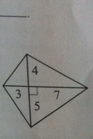 Найдите площать четырех угольника,изображенного на рисунке. Диагонали четырехугольника перпендикулярны.