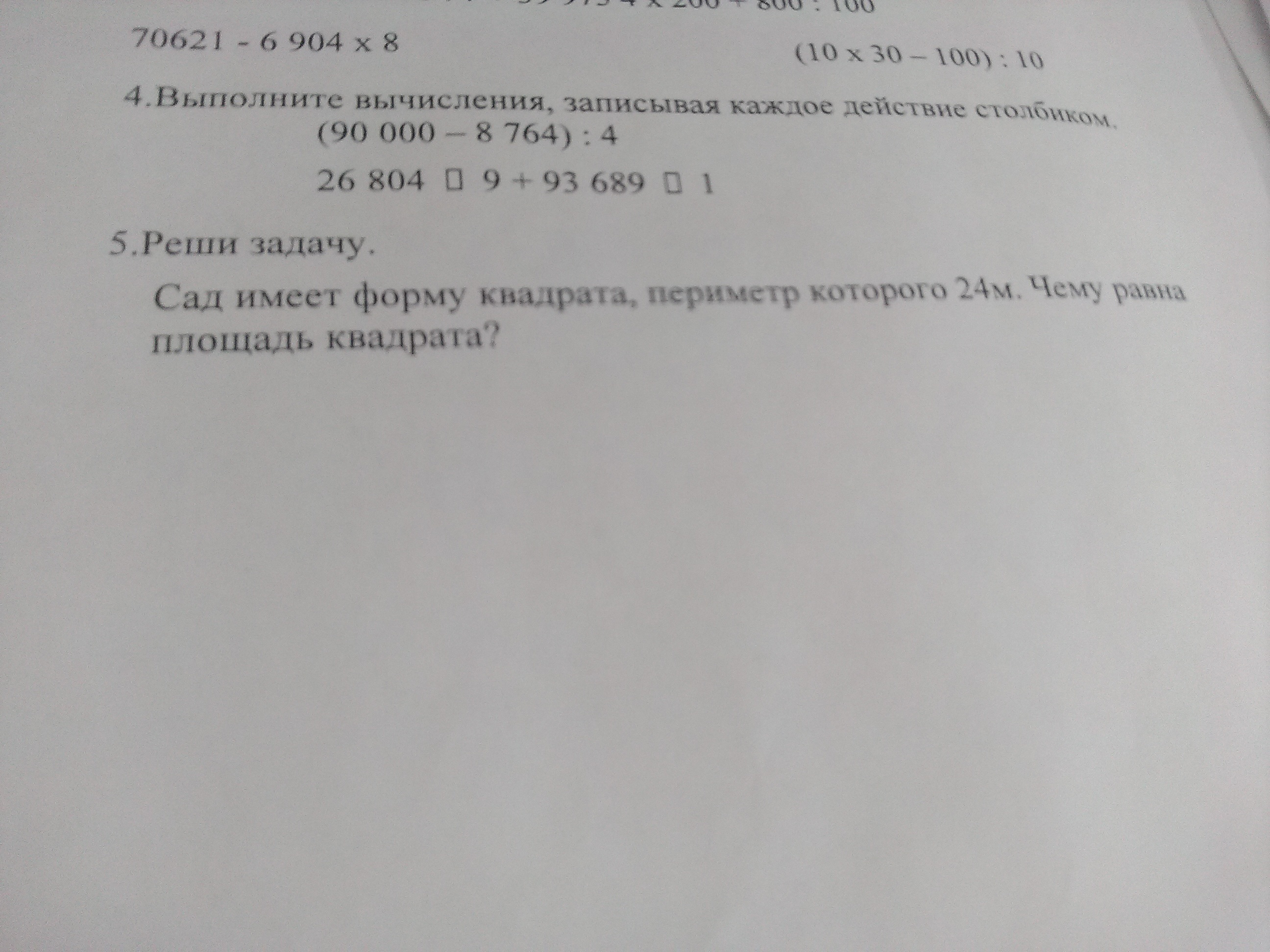 1) узнаем длину одной стороны: 24 : 4 = 6 (м) одна сторона.