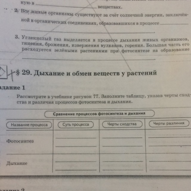 1)Фотосинтез- процесс синтеза растением своей биомассы, путем поглощения кислорода, и выделением углекислого газа. Дыхание- усвоение кислорода из воздуха живым организмом. 2) в обоих процессах участвует кислород и углекислый газ 3) процессы идут в обратных относительно друг друга направлениях