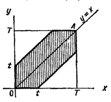 На рисунке квадрат со стороной Т и два равных равнобедренных прямоугольных треугольника с катетами Т - t. Соответственно площадь заштрихованной фигуры будет равна разнице между площадями квадрата и двух треугольников.