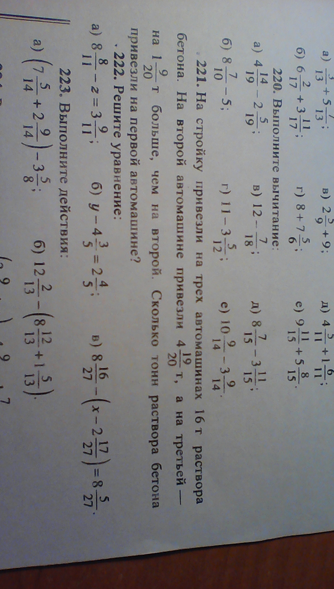 1)4 19/20 +1 9/20=6 8/20 (т) 3 машина 2)16-(4 19/20 + 6 8/20 )=16-11 7/20=4 13/20(т) на первой машине