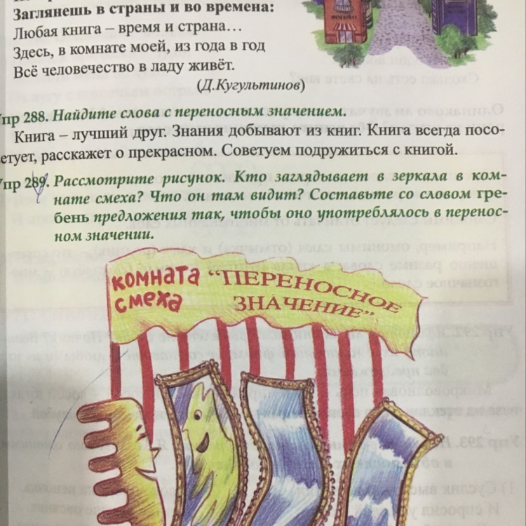 Возле зеркала гребень (расчёска), он видит или человека или гребень (другое значение) на голове.