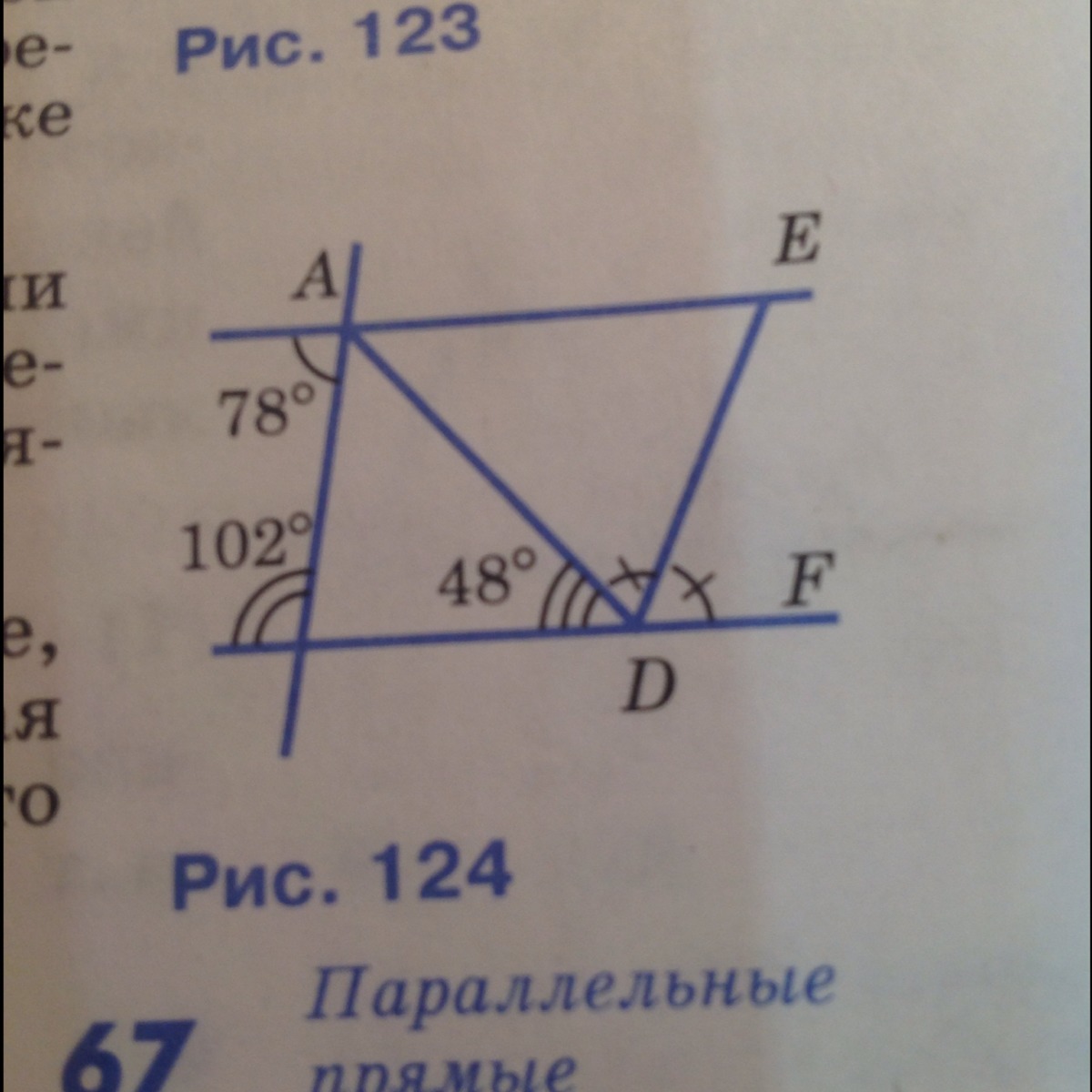 На рисунке 124 DE- биссектриса угла ADF. По данным рисунка найдите углы треугольника ADE.