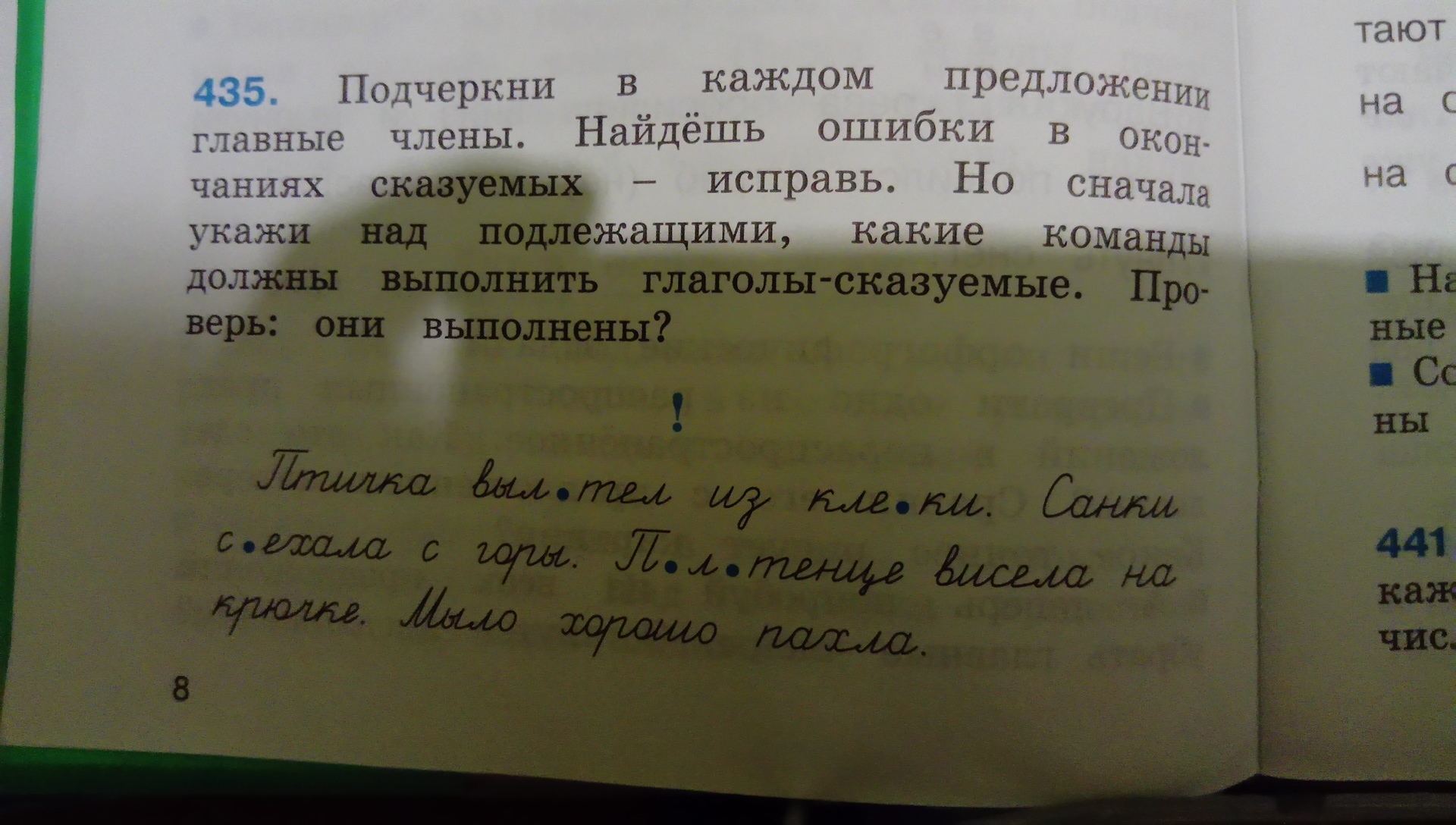 птичка вылетел из клетки. санки съехали с горы. Полотенце висела на крючке. мыло хорошо пахло