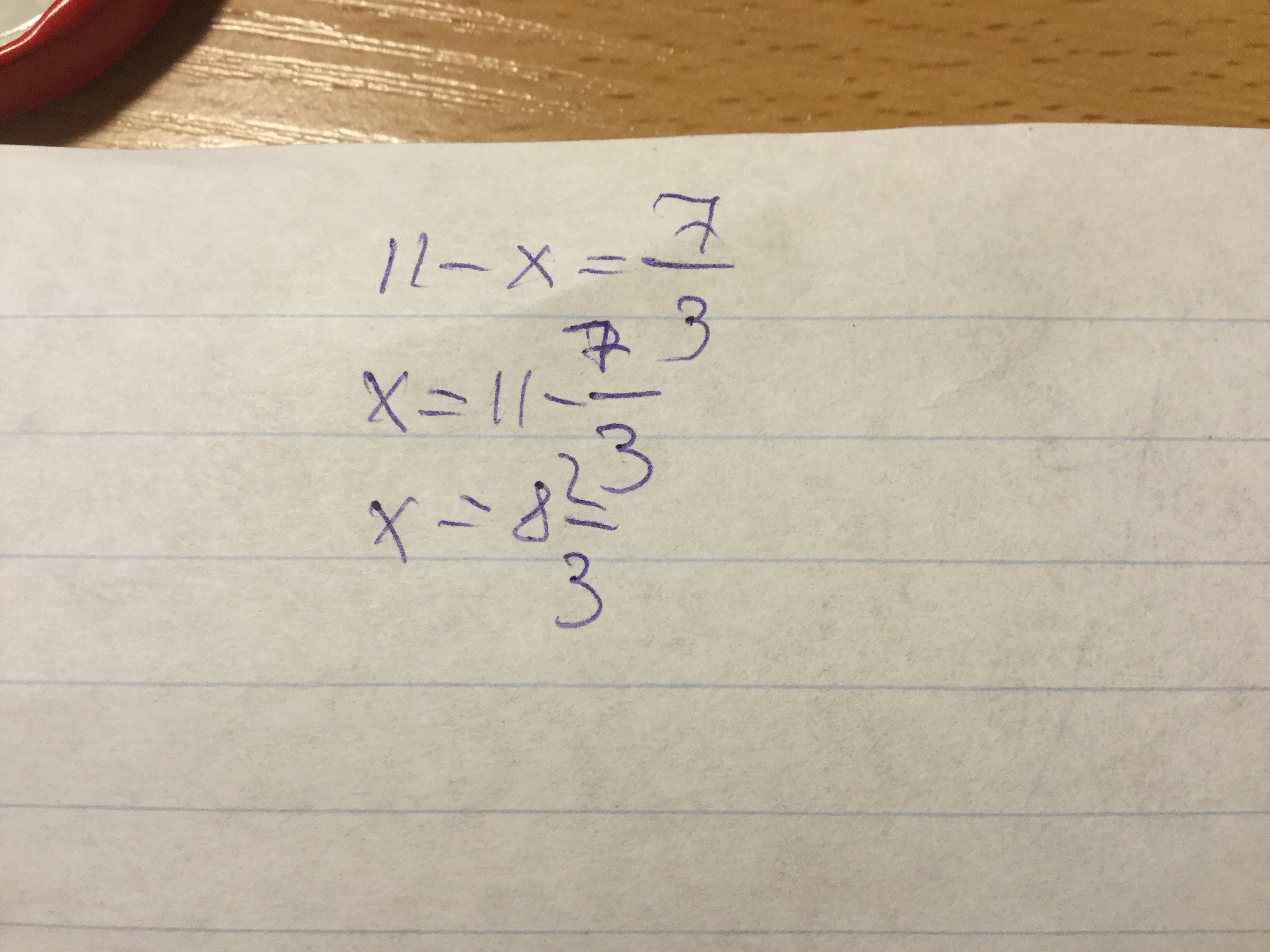 11 - 7 3 = 11·3 3 - 7 3 = 33 3 - 7 3 = 33 - 7 3 = 26 3 = 2 + 8·3 3 = 8 2 3 ≈ 8.666666666666666 вот как решается , но ищется так как на фото