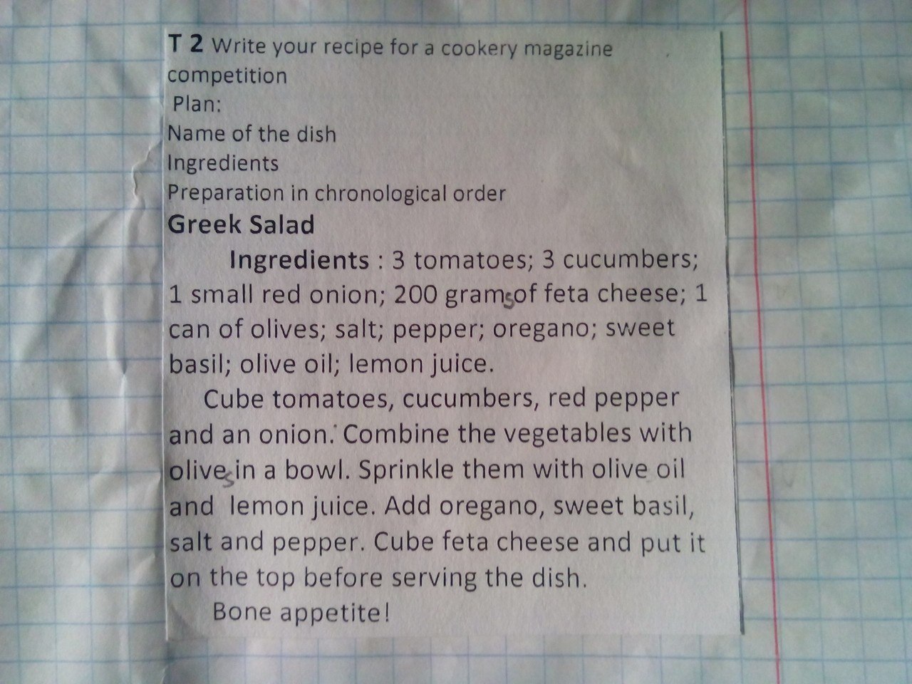Помогите написать маленький рецепт на английском (про любую еду), чтобы можно было долго не мучатся