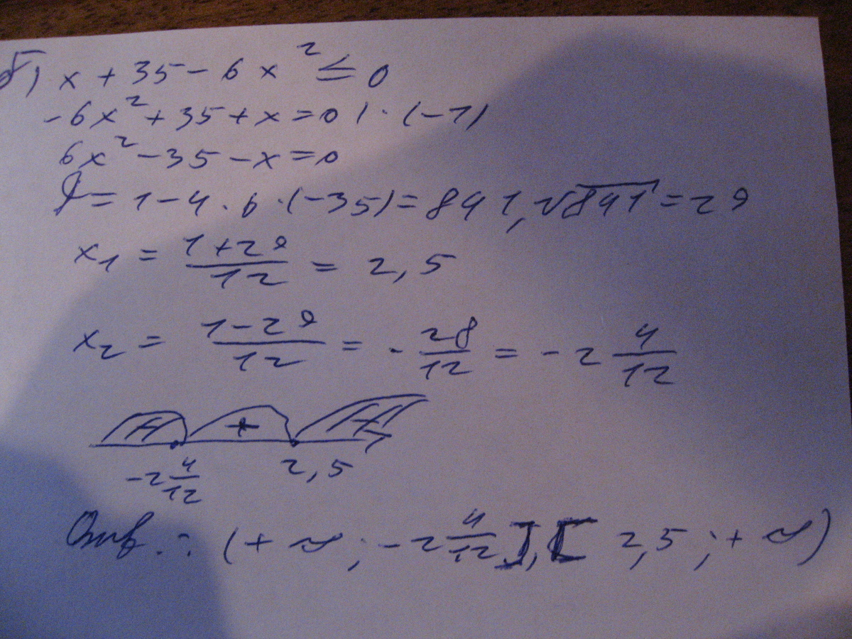 б)х+35-6х в квадрате<= 0