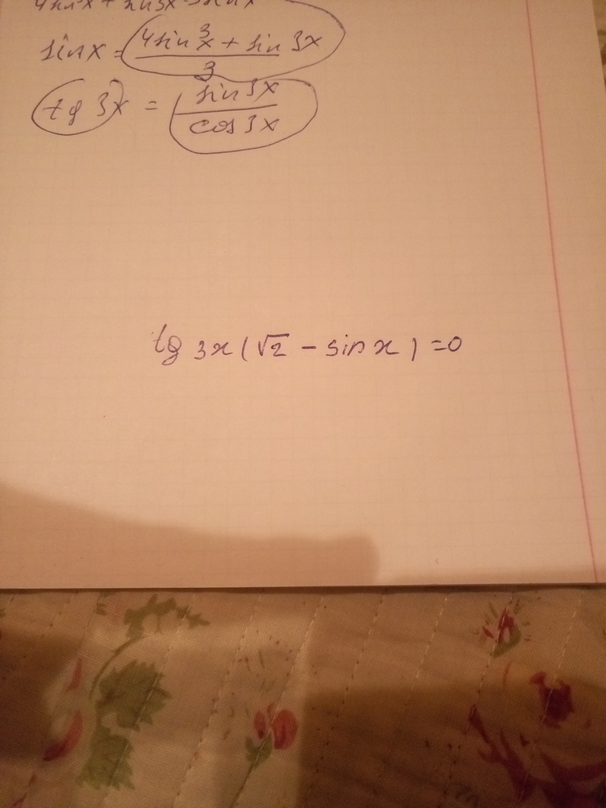 tg3x(√2 -sinx)=0