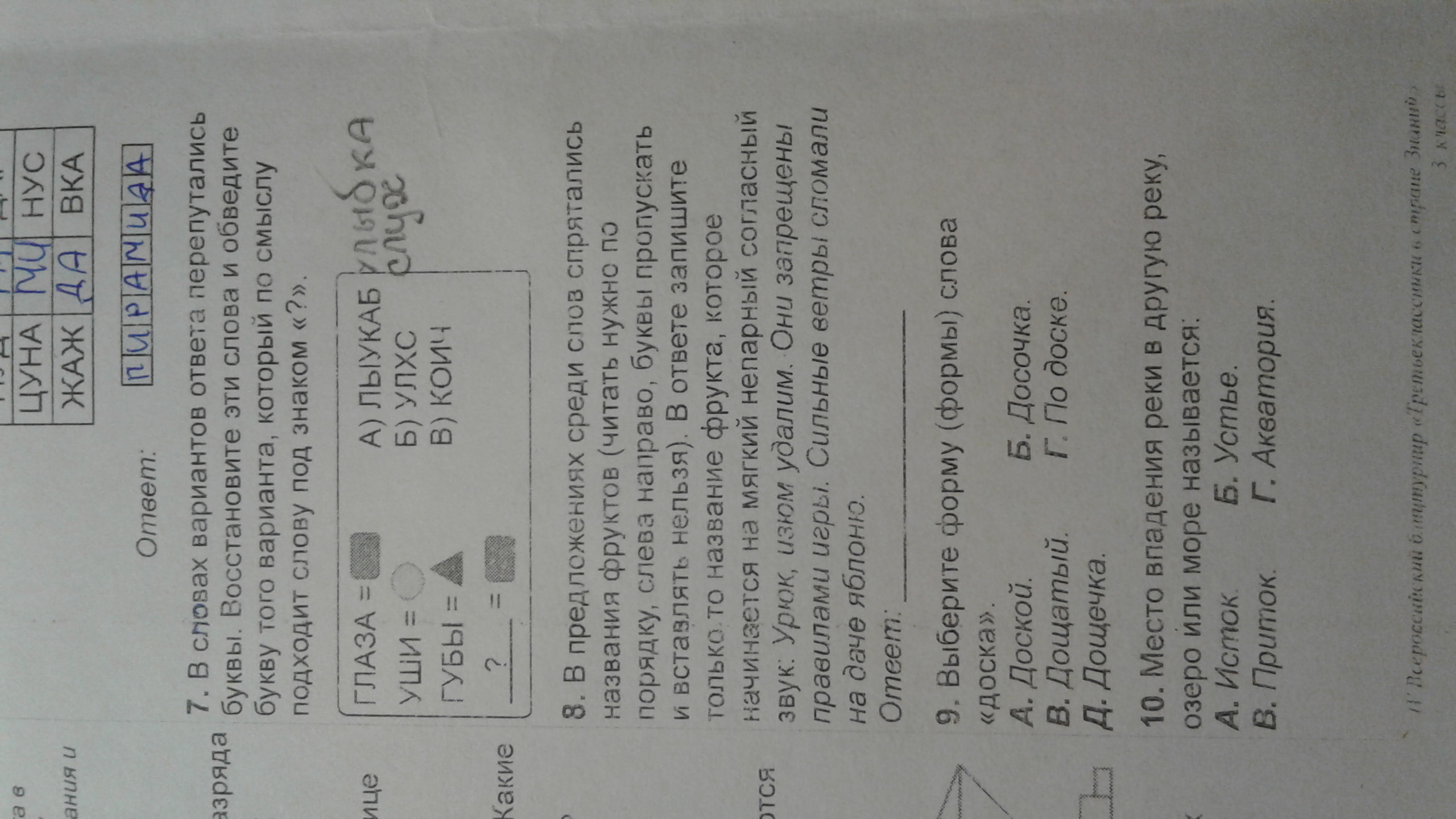 7 в) очки
