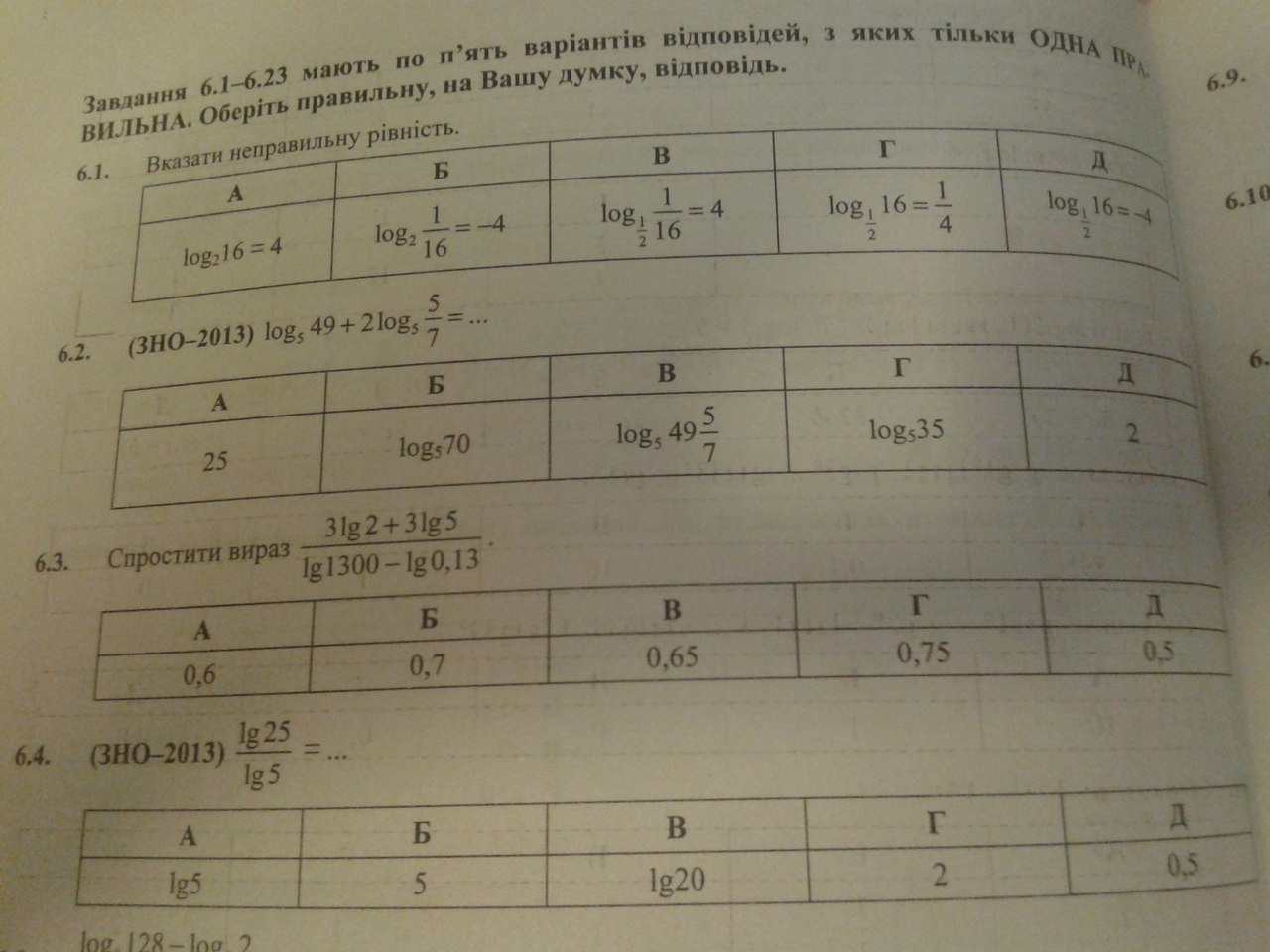 6.4. lg25/lg5=lg(5*5)/lg5=(lg5+lg5)/lg5=lg5/lg5+lg5/lg5=1+1=2.