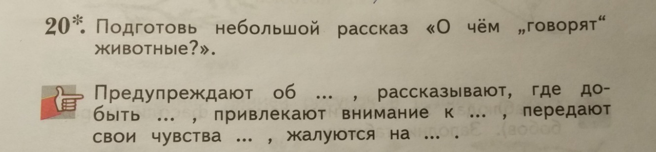 Помогите составить маленький рассказ по схеме. О чем говорит какое либо животное. например медведь, цапля, кошка и т.п. Срочно. Спасибо. Большое.