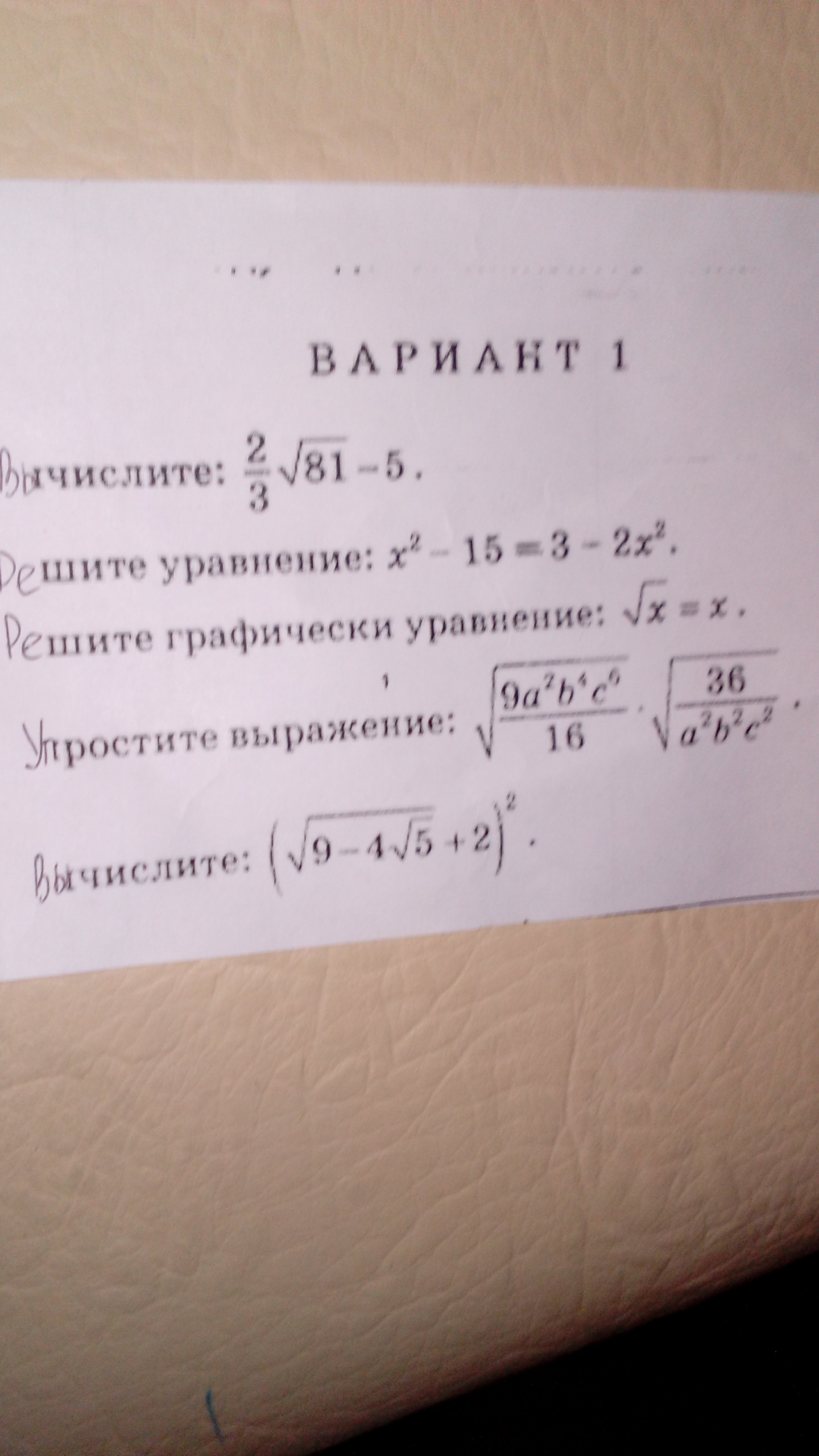 1) 2/3*√81 - 5 = 2/3*9 - 5 = 2*3 - 5 = 6 - 5 = 1