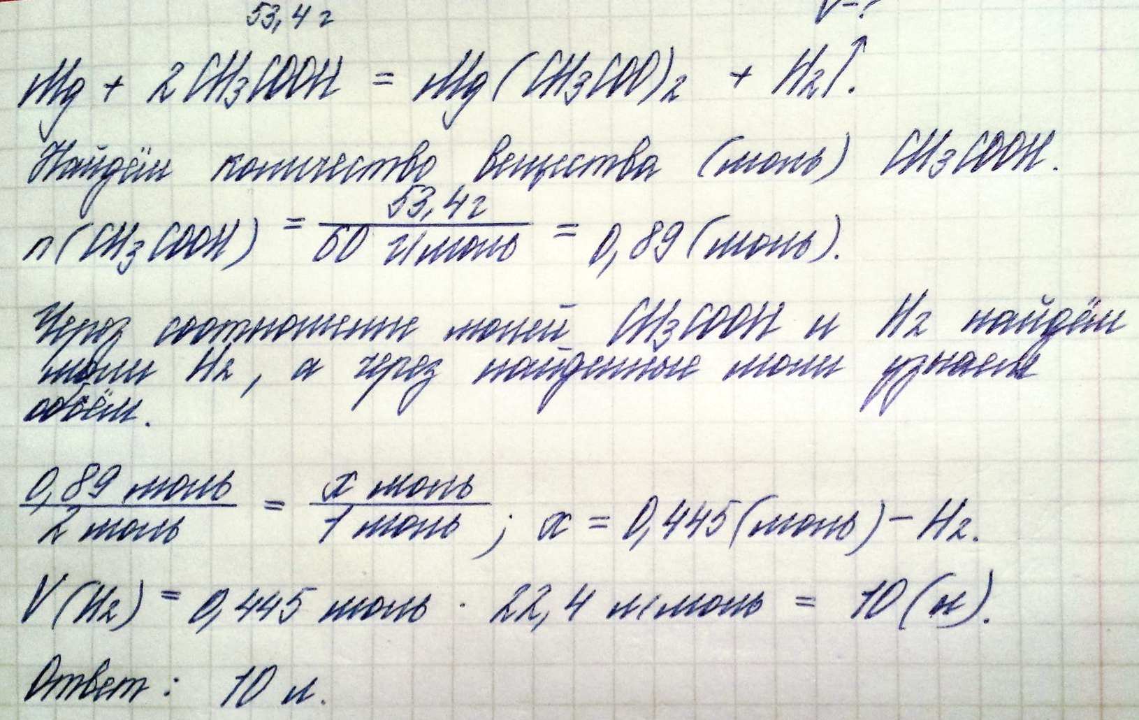 определите объем газа выделившегося при взаимодействии избытка магния и этановой кислоты массой 53,4