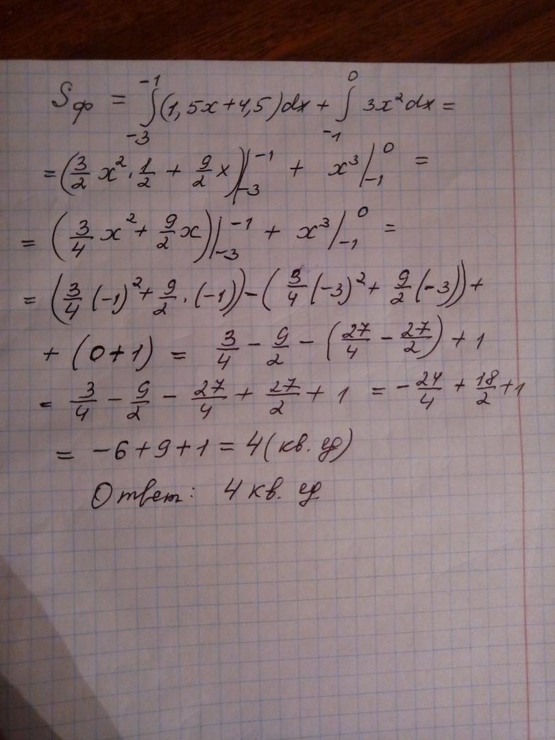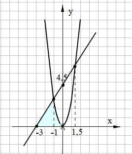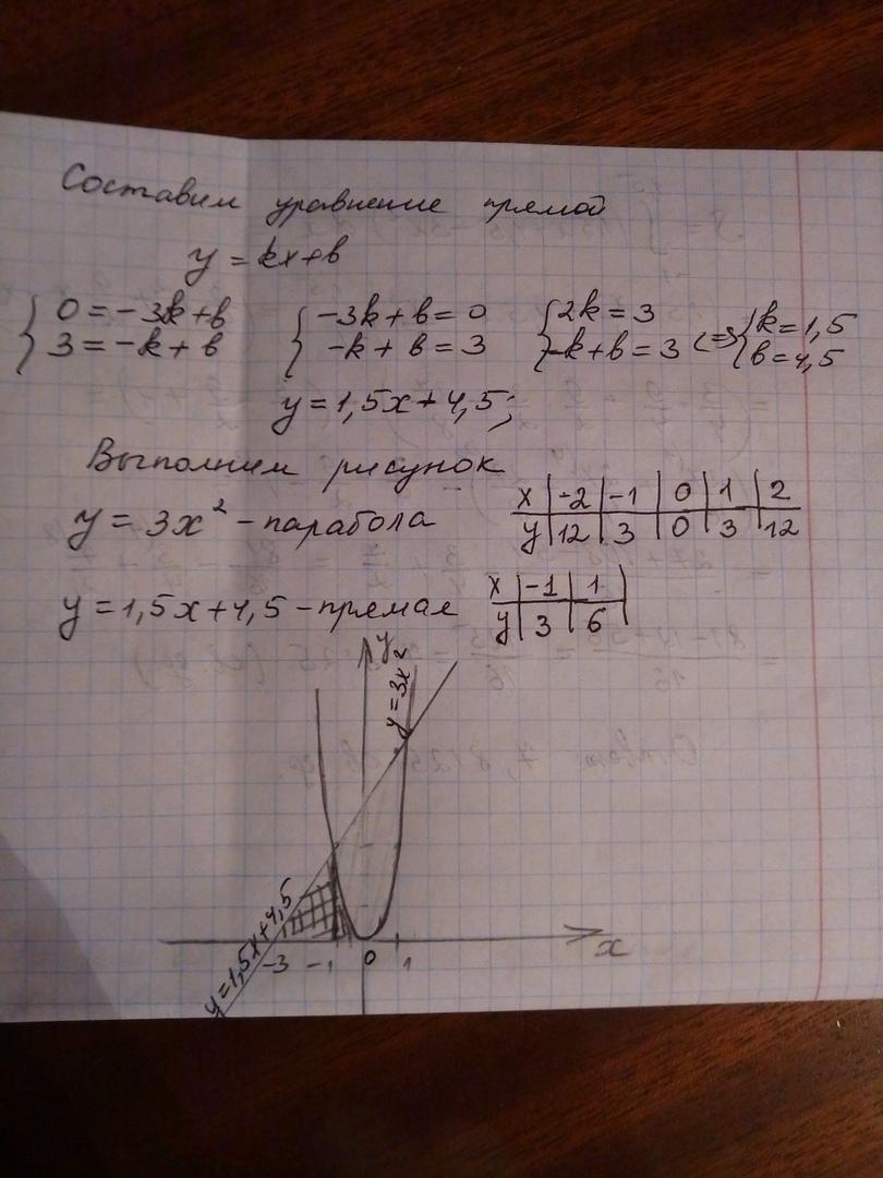 Найдём точки пересечения параболы у = 3х² и прямой у = 1,5х + 4,5