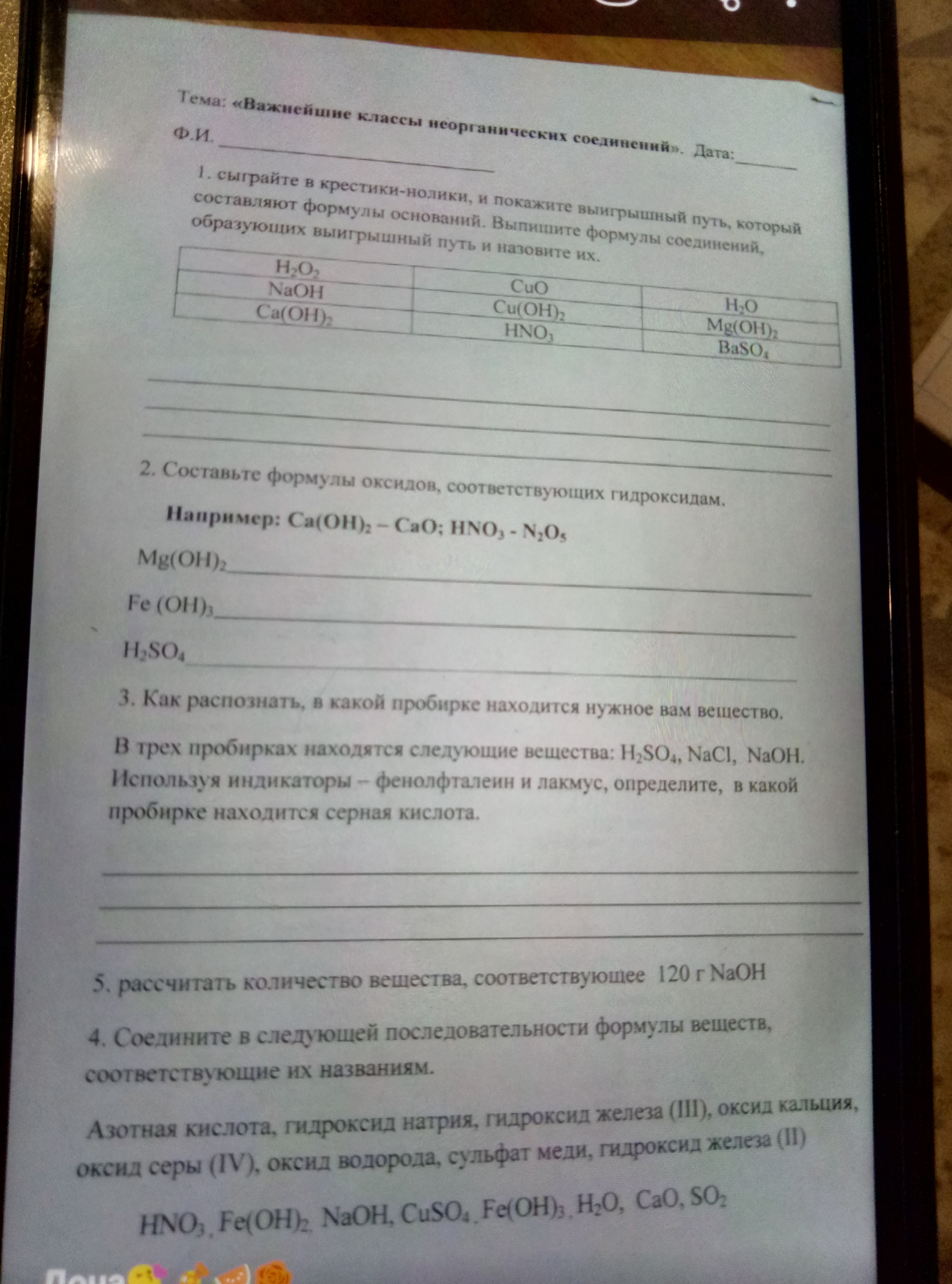 1. Сыграйте в крестики-нолики, и покажите выигрышный путь, который составляют формулы оснований. Выпишите формулы соединений, образующих выигрышный путь и назовите их.