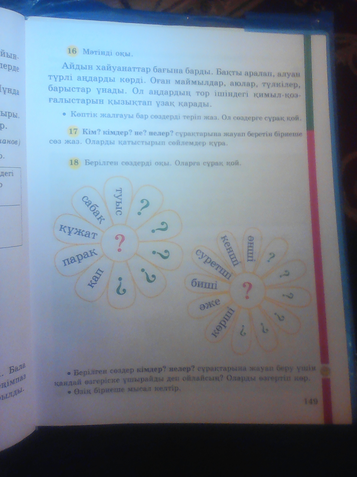 Туыс, сабақ,құжат,парақ,қап,парта,айна,көрпе,кітап,қалам.