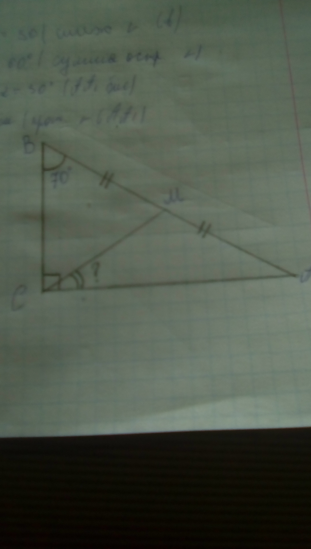 Так как медиана прямоугольного(проведенная из прямого угла) треугольника делит противолежащую сторону пополам ,а сама равна половине этой же стороны то СМ=АМ следовательно треугольник СМА равнобедренный.