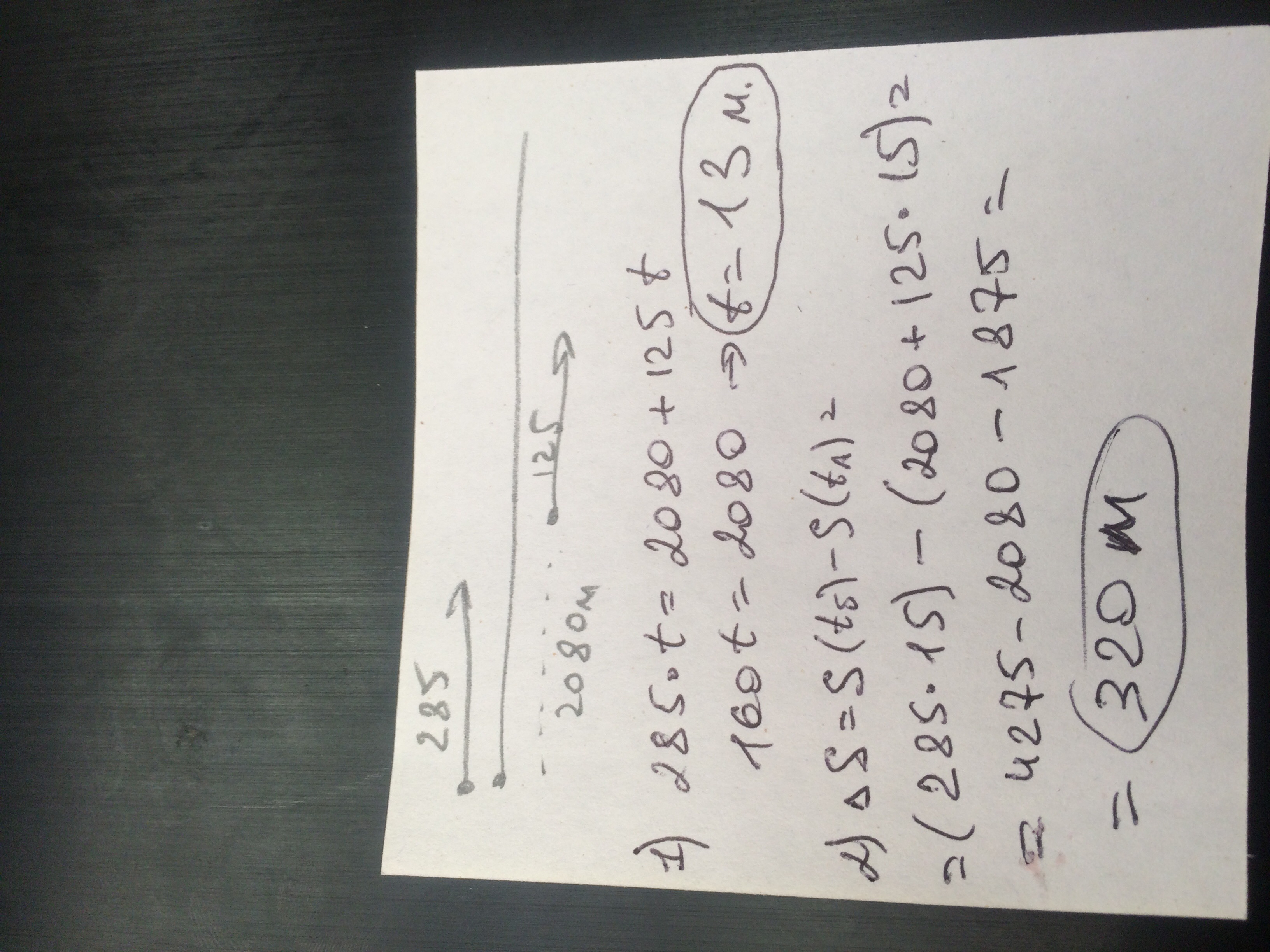 По прямой дороге в одном направлении с постоянной скоростью едут на велосипедах Аня и Борис.Скорость Ани 125 м/мин,а Бориса 285 м/мин.В момент старта Аня опережала Борю на 2080 м.