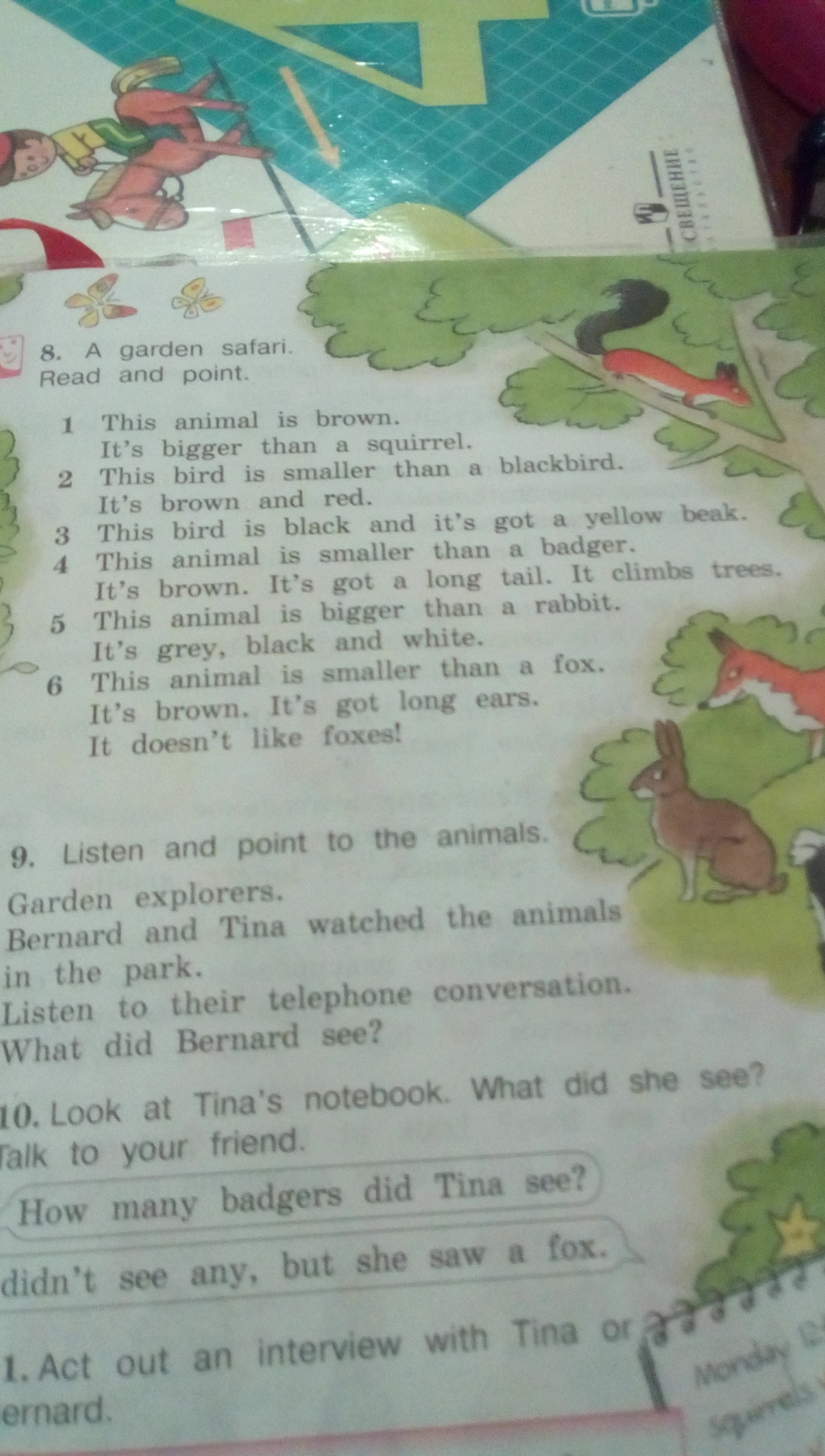 6. Это животное меньше чем лиса. Оно коричневое. Оно имеет длинные уши. Оно не любит лис!