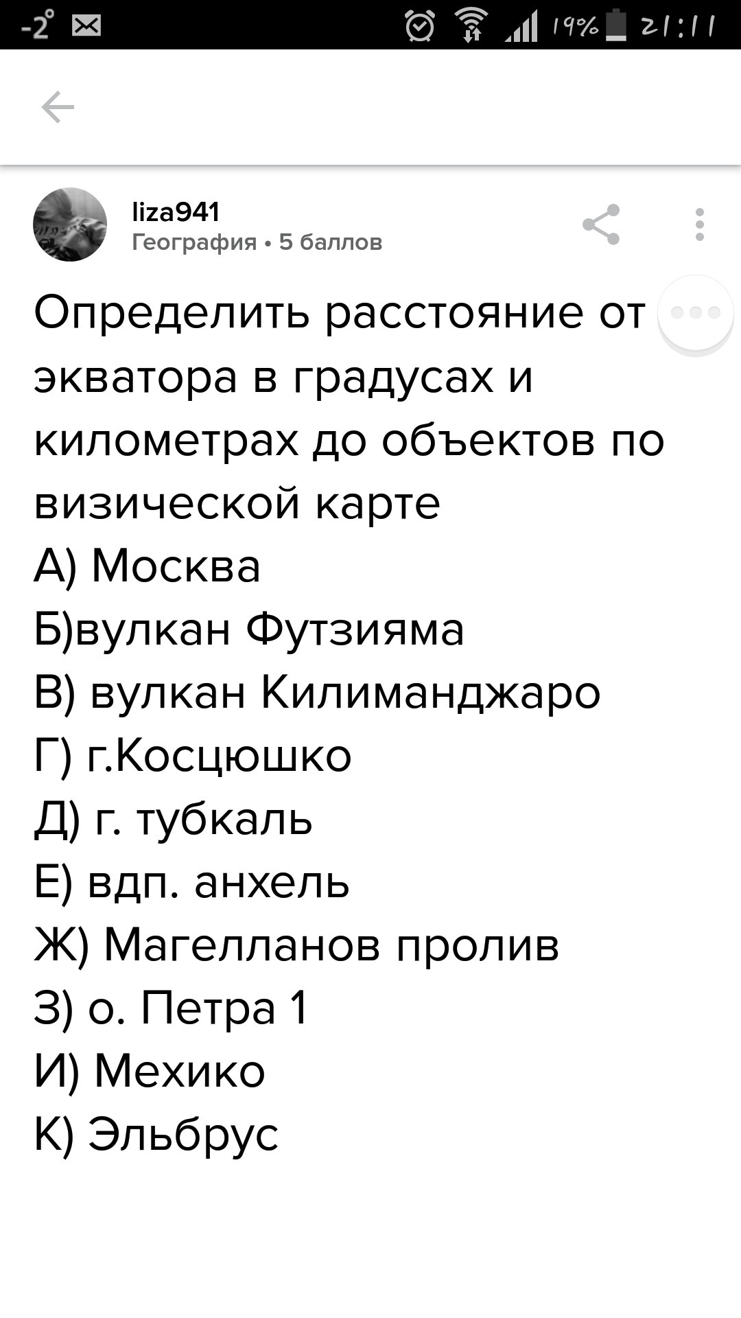 москва 53 северной шороты = 5883км. вулкан ф.-36север ш =3996км. вулкан К -3южной ш=333км. гора Косцюшко- 36 южной ш= 3996КМ.