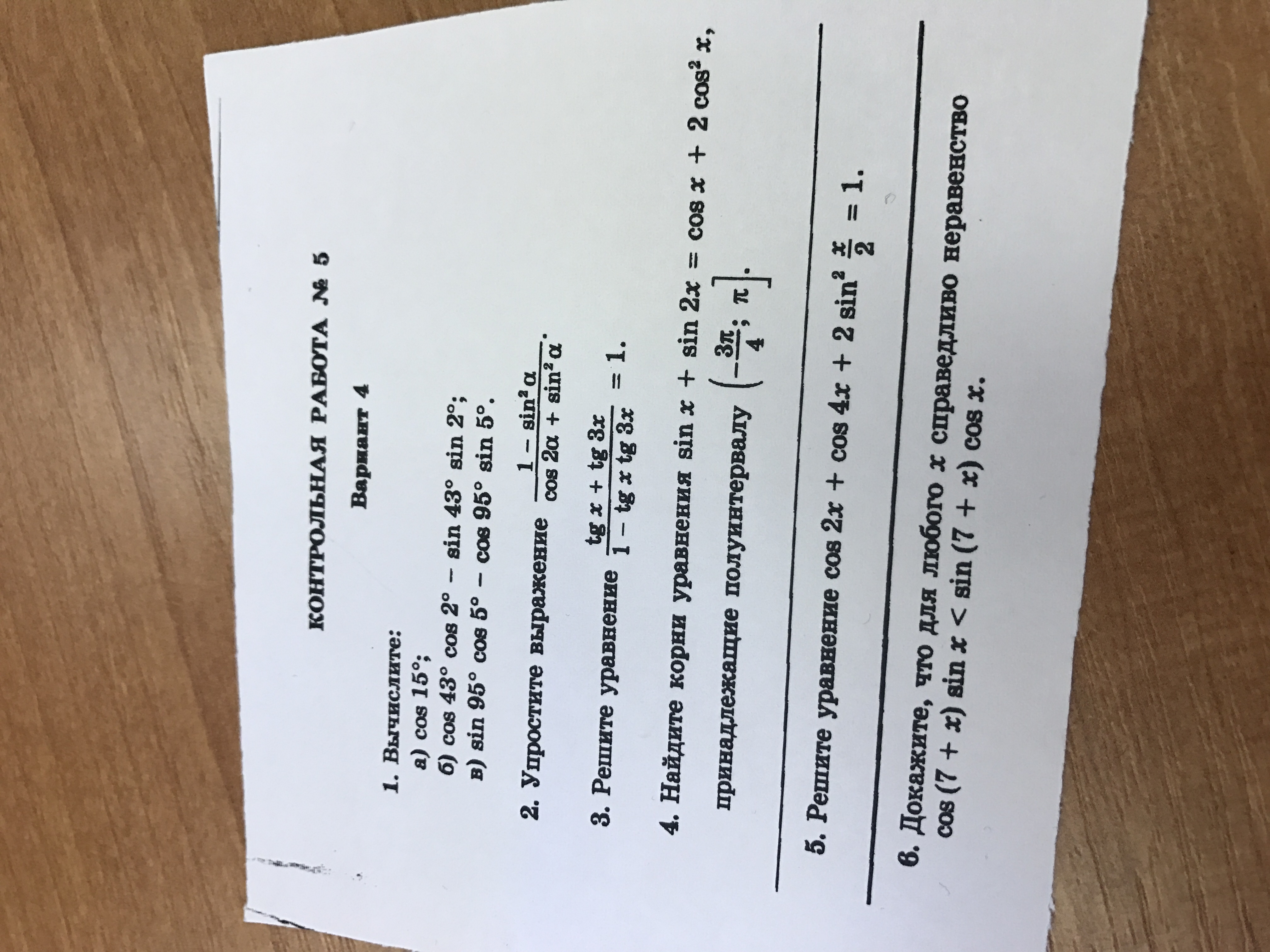 Номер 1) а) Сos 15= Cos(45-30) = Cos 45 * Cos 30+ Sin 45 * Sin 30 =корень з 2 разделить на 2 умножить на корень з 3 разделить на 2 плюс корень з 2 /2 * 1/2 ) равно = корень з 6 корень - корень з 2 разделить на 4.