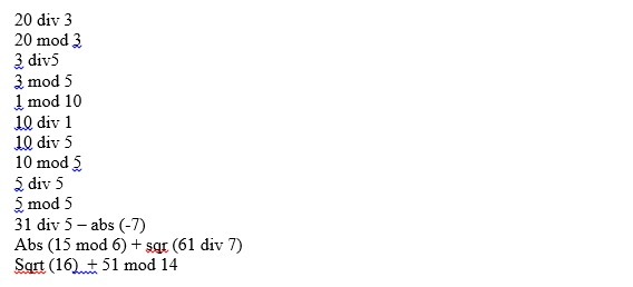 20 div 3 = 6 ( т.к. div получает только целые значения)