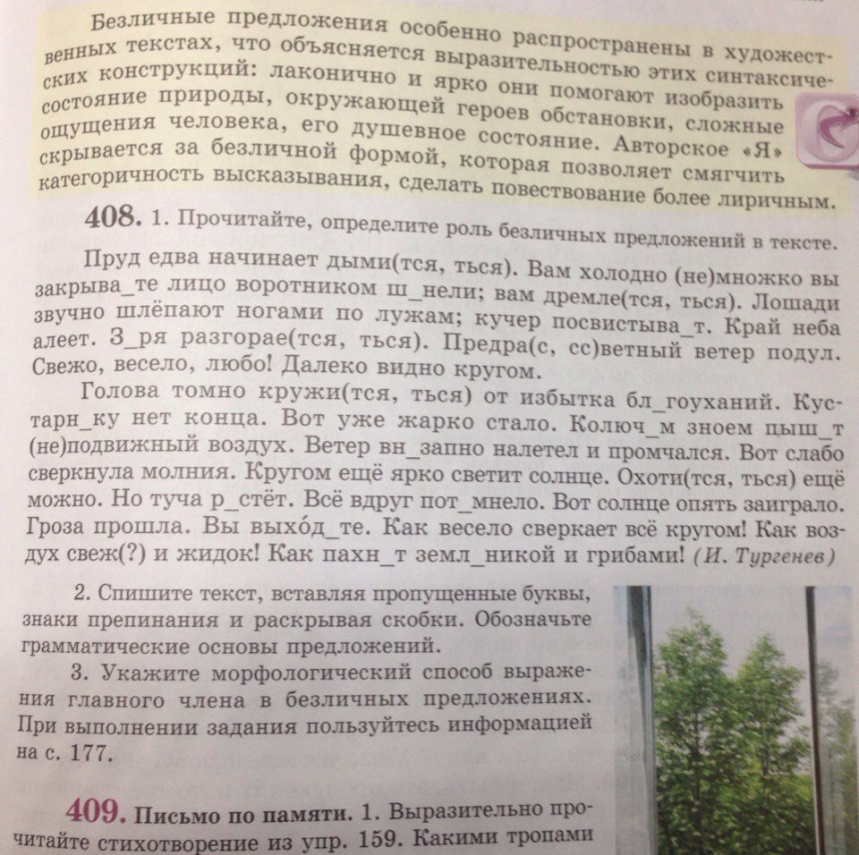 Упражнение 408. Выделите в каждом предложении грамматическую основу (и скажите, чем выражено сказуемое), скажите, какие предложения односоставные, а какие двусоставные. Заранее благодарю.
