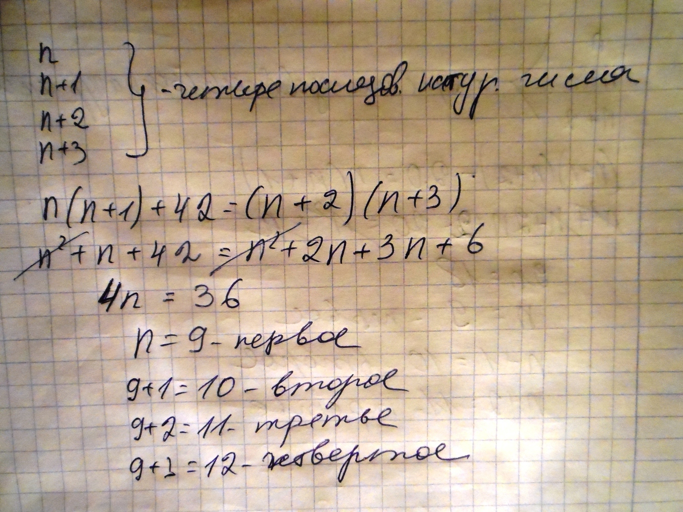 произведение двух первых из этих чисел на 42 меньше произведения двух последних ;