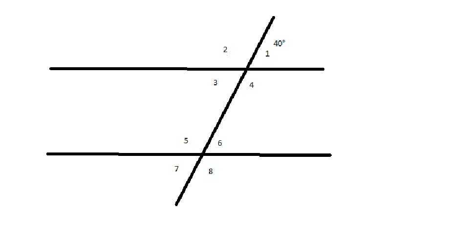 как найти все углы образованных двумя параллельными прямыми и секущей если известен только 1 угол у которого 40 градусов, прямые параллельны