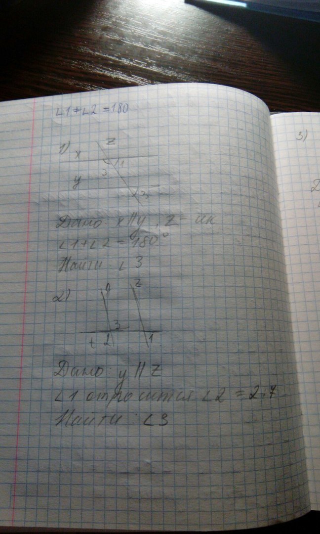 2) пусть ∠1=2х, а ∠2=7х, тогда 2х+7х=180 градусов