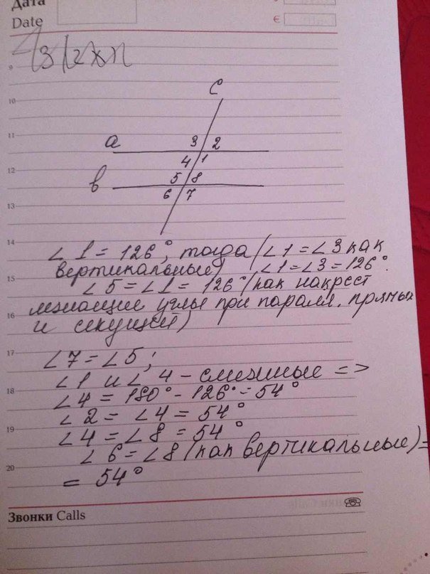 найдите все углы, образованные при пересечении двух прямых паралельных прямых секущей если один из этих углов равен 72 градуса.