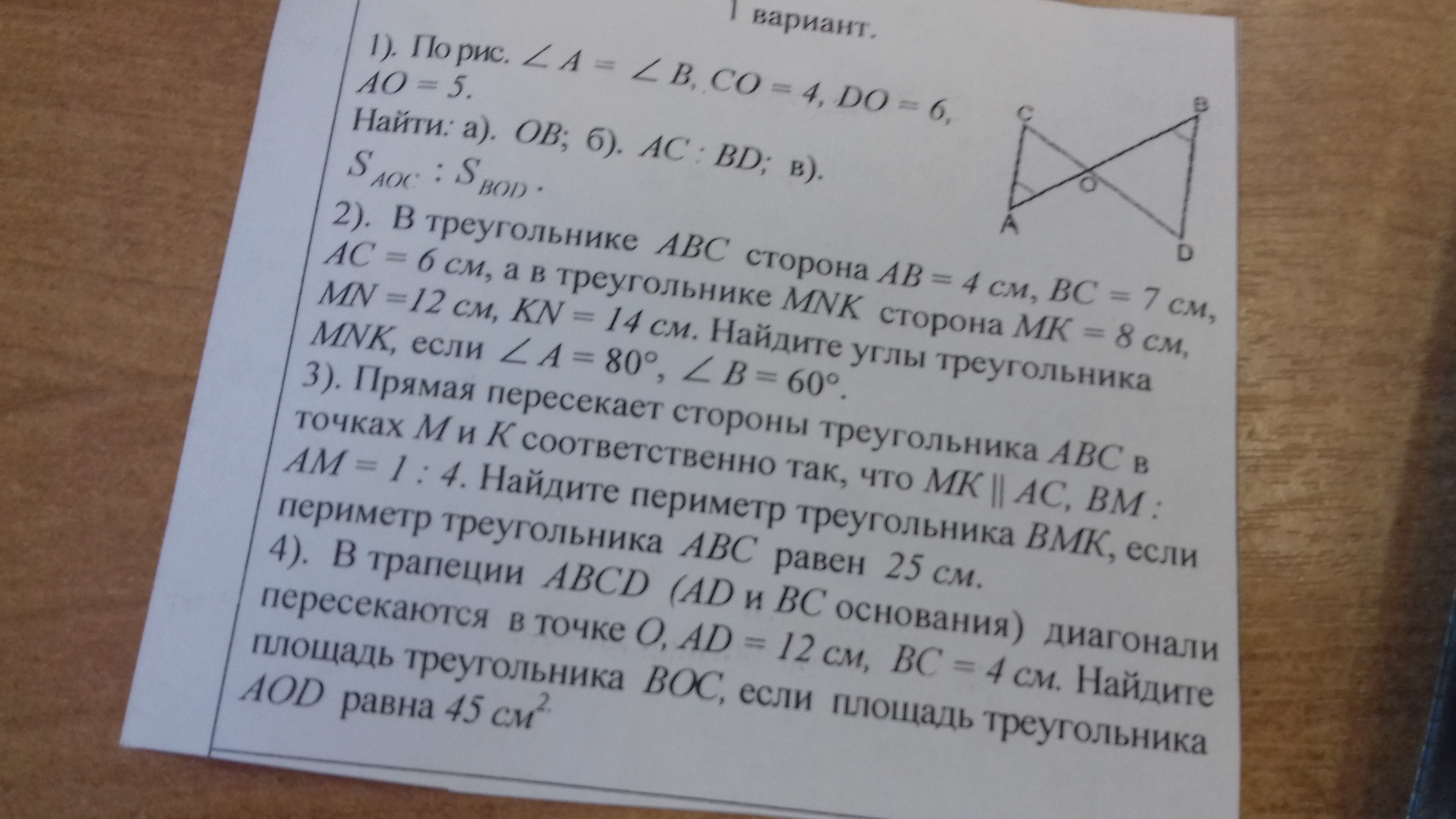 1)треугольники AOC & BOD подобны по двум углам (О и a = b), из этого следует: