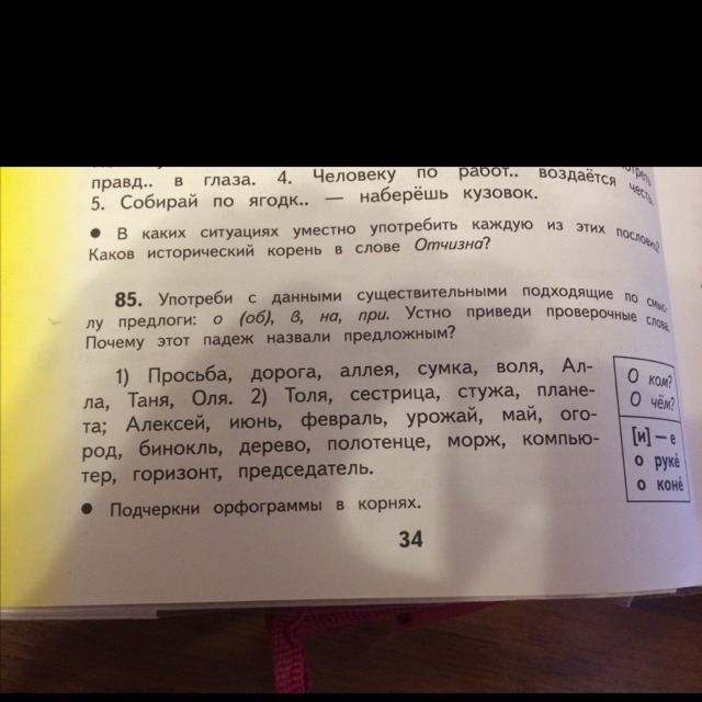 1.О просьбе, на дороге, на аллее, в сумке, о воле, об Алле, о Тане, об Оле.