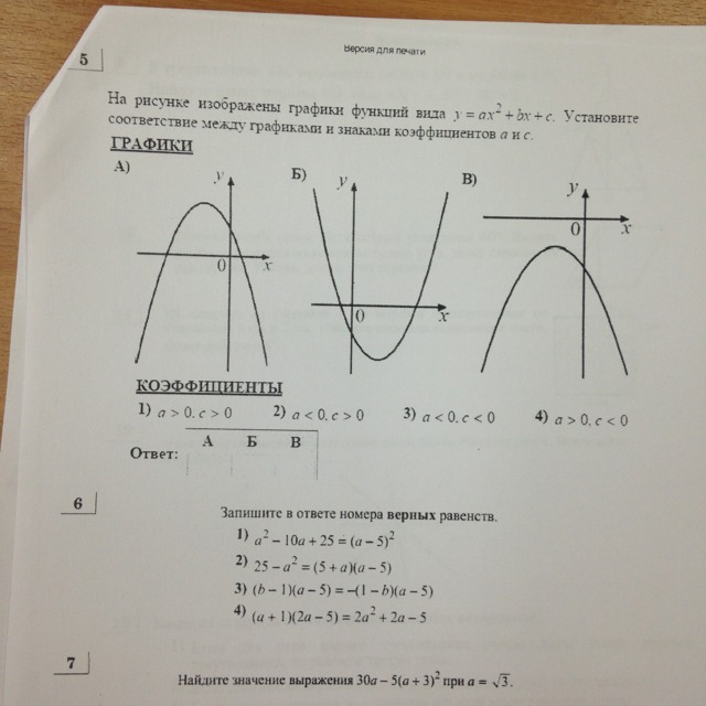 Там а влияет на направление графика вверх или вниз