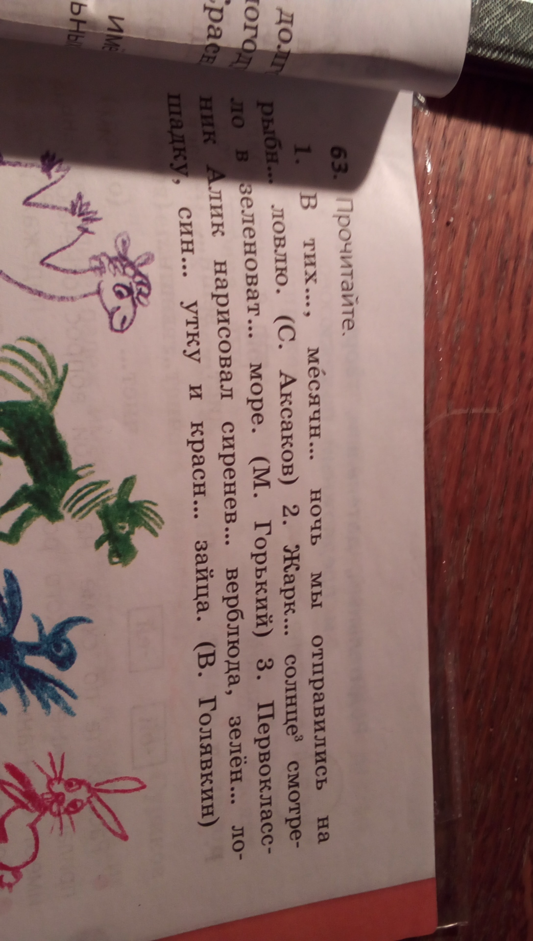 помогите пожалуйста упражнение N63 вопрос Спишите, вставляя пропущенные окончания.Над каждым именем прилагательным укажите падеж