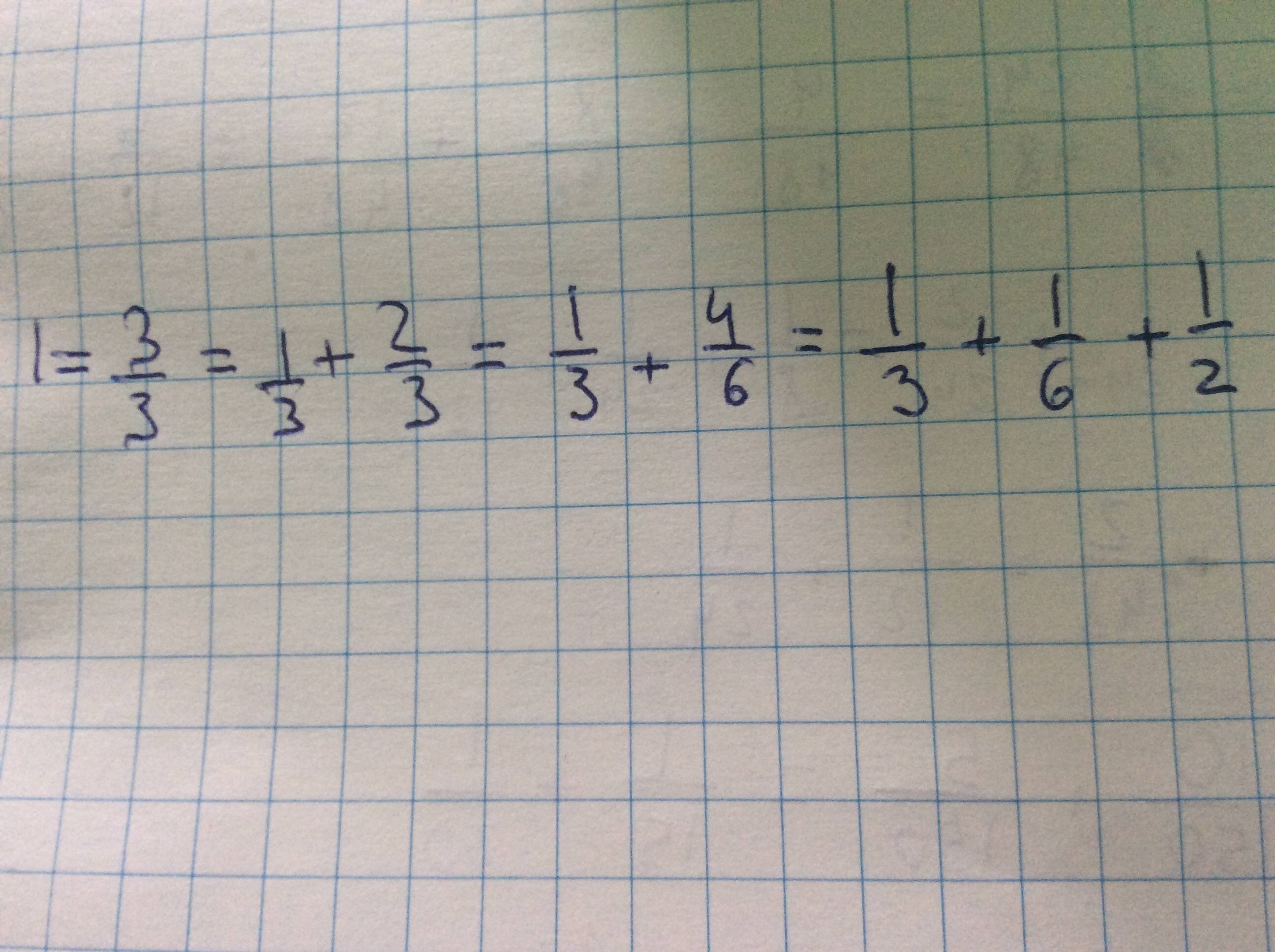 Приняв площадь прямоугольника за 1 , запишите число 1 в виде суммы аликвотных дробей с различными знаменателями