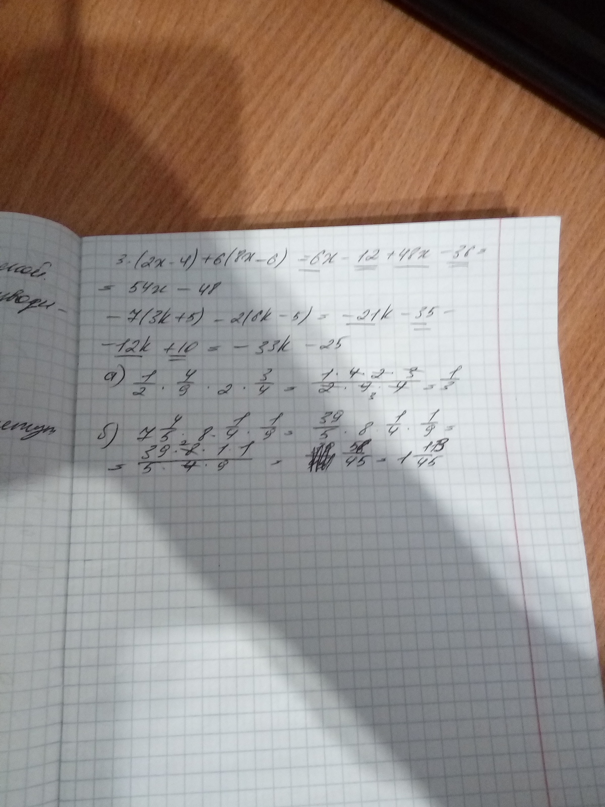 б) −7⋅(3k+5)−2⋅(6k−5)