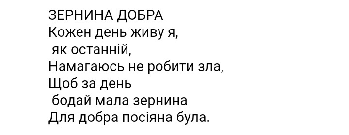 Основною думкою є те, що, потрібно завжди робити добро, щоб за день була посіяна хоч одна зірнина.