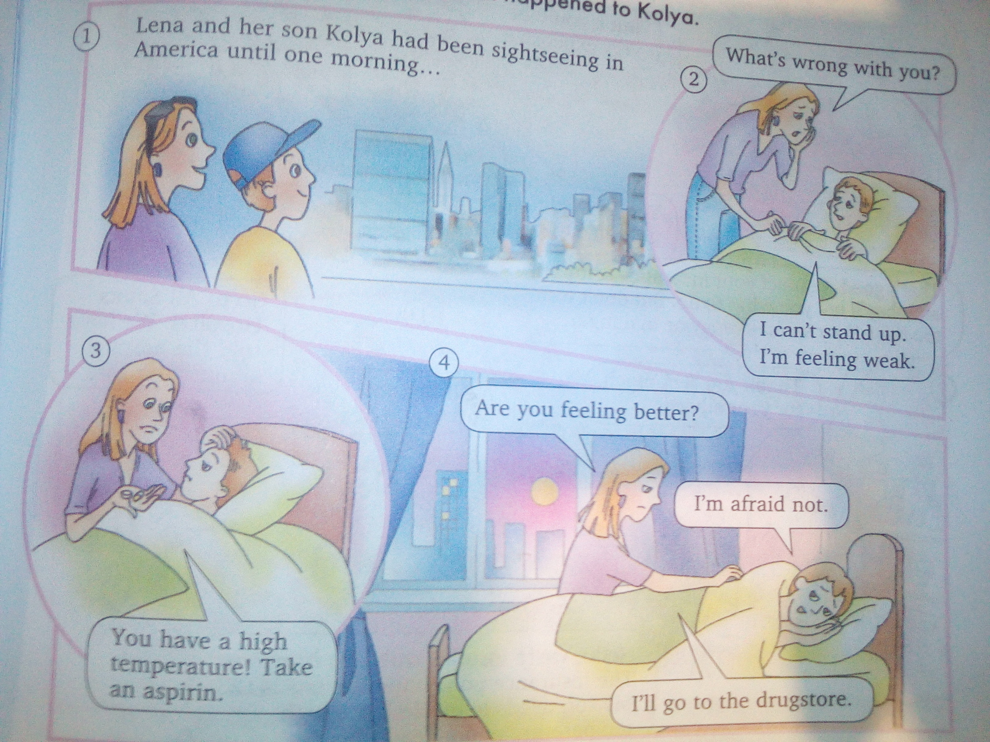 Lena asked her son Kolya what was with him. He answered, that he was feeling weak today and he could not stand up.