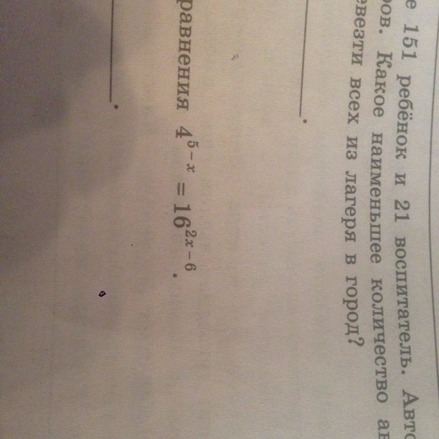 4^(5-x)=16^(2x-6)⇔ 4^(5-x)=(4^2)^(2x-6)⇔ 4^(5-x)=4^(4x-12)⇔