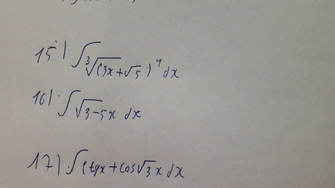 ![intlimits { sqrt[3]{(3x+ sqrt{5})^4 } } , dx =3/7* sqrt[3]{(3x+ sqrt{5} )^7} *1/3+C= intlimits { sqrt[3]{(3x+ sqrt{5})^4 } } , dx =3/7* sqrt[3]{(3x+ sqrt{5} )^7} *1/3+C=](https://tex.z-dn.net/?f=+intlimits+%7B+sqrt%5B3%5D%7B%283x%2B+sqrt%7B5%7D%29%5E4+%7D+%7D+%2C+dx+%3D3%2F7%2A+sqrt%5B3%5D%7B%283x%2B+sqrt%7B5%7D+%29%5E7%7D+%2A1%2F3%2BC%3D)