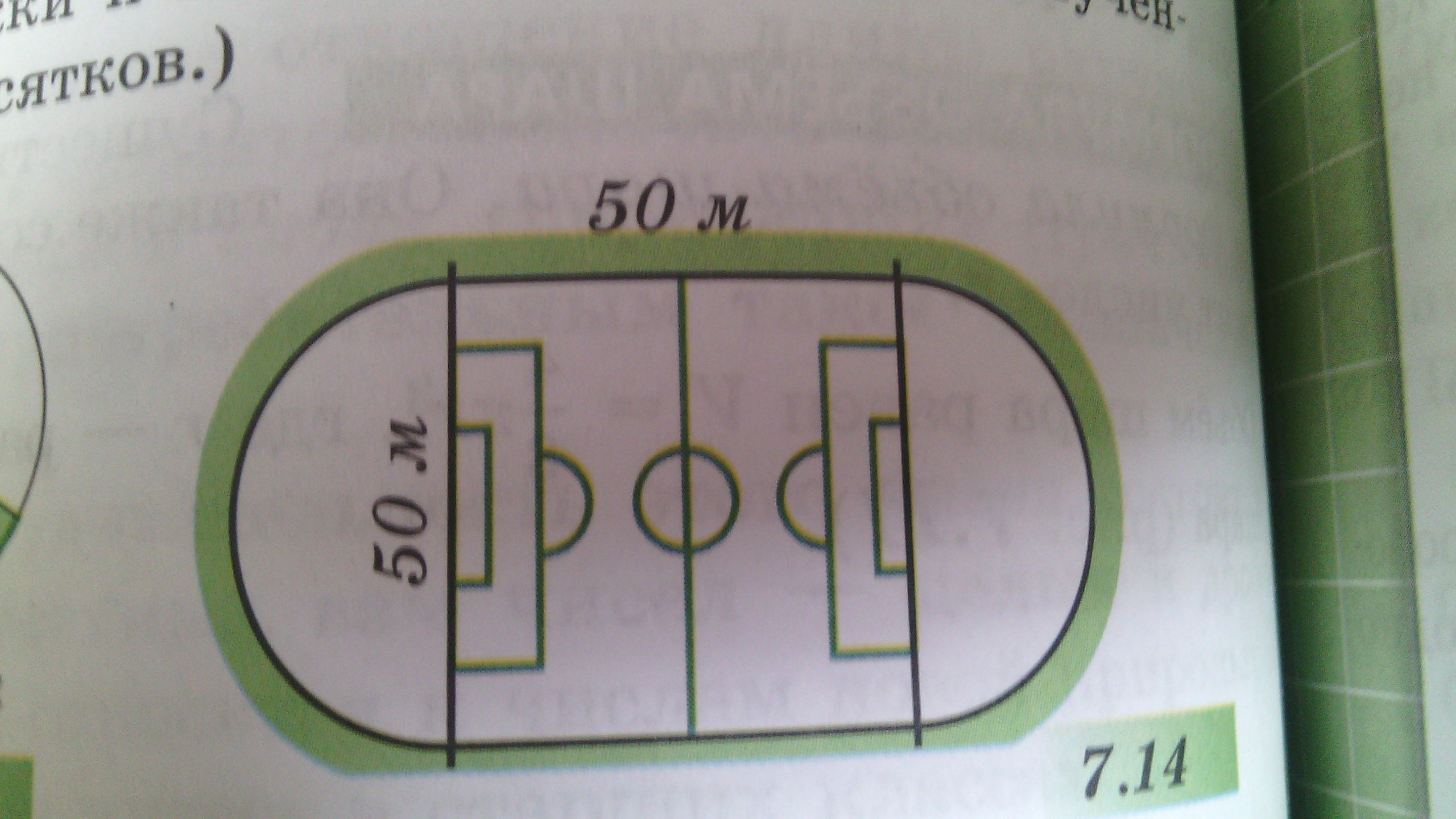 На рисунке 7.14 изображён школьный стадион, Вокруг которого проложена беговая дорожка. Найдите длину дорожки и площадь стадиона. ( открывается полученное числовые значения округлите до десятков).Пожалуйста Решите задачу с условием с формулой
