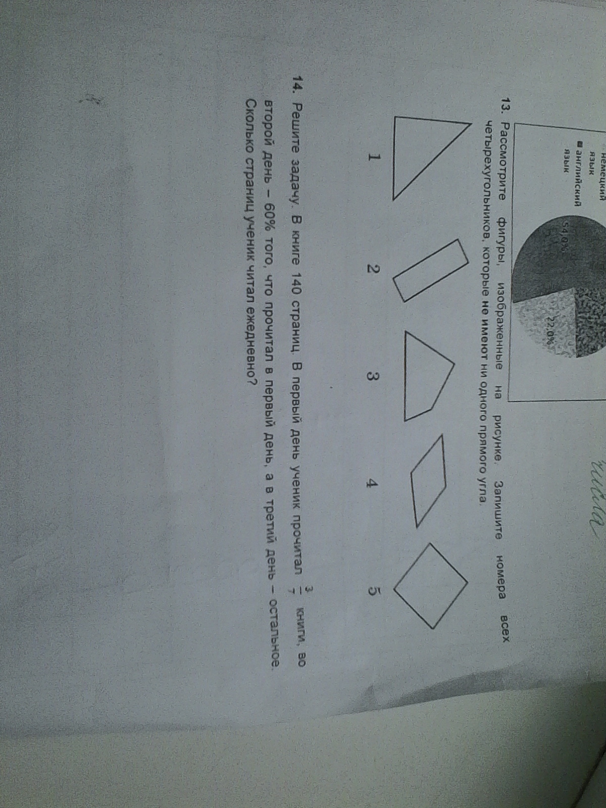 Это очень простое задание. тебе нужно взять угольник (ваглядит как треугольная линейка) и измерить каждый угол всех фигур, если форма уголькика совпадает с углом, то он прямой т.е 90 градусов, но нужно прикладывать прямой угол к картинке (он тупее чем другие). Но, наглаз могу сказать, что ответом будет фигуры 3, 4, 5.