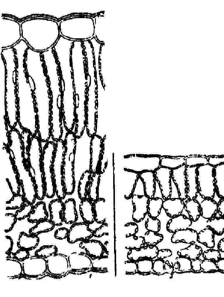 2.3 Чем отличается внутреннее строение светового листа от теневого?