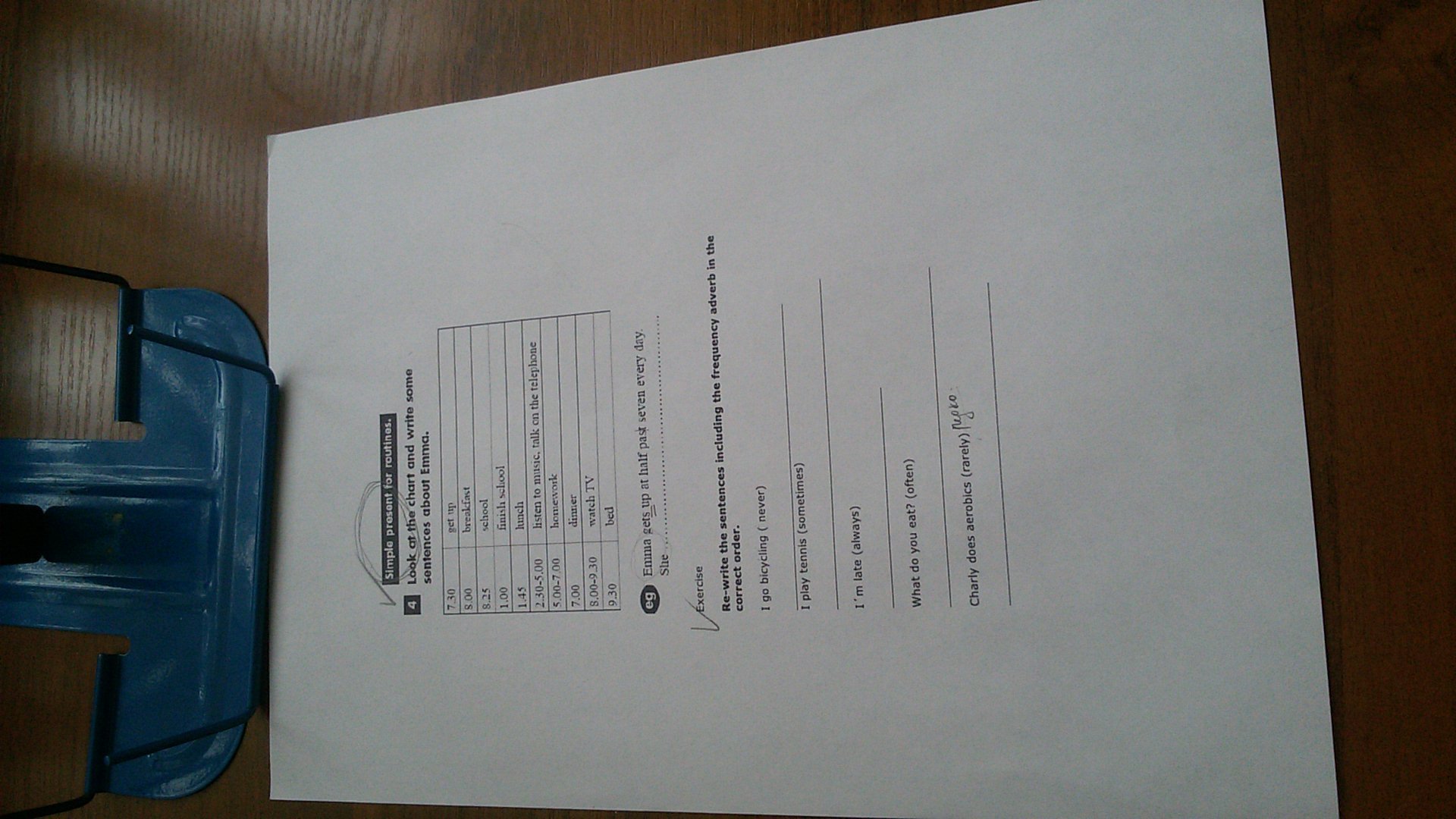 She listens to music and talks on the telephone from half past 2 to 5 o`clock