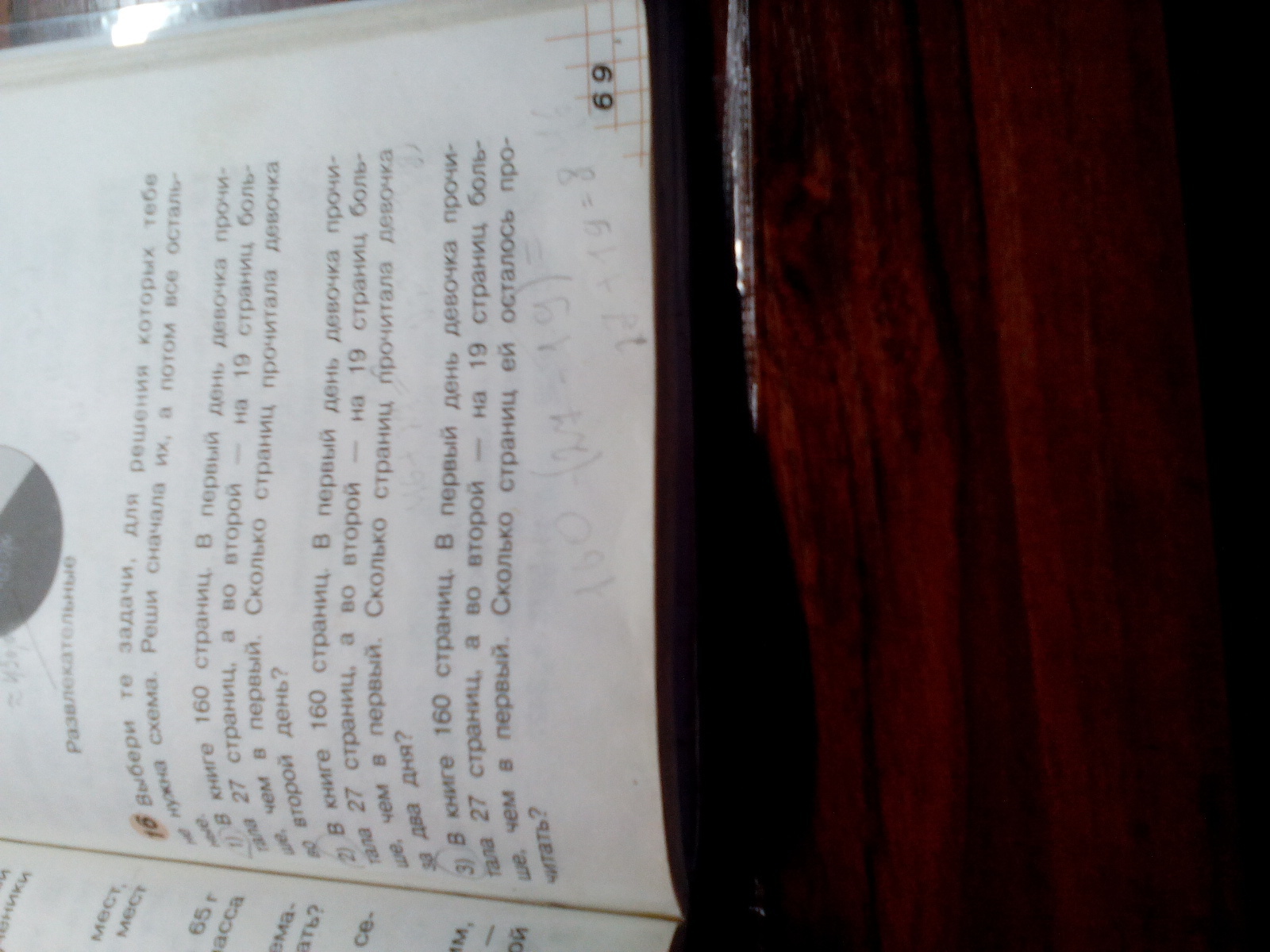 3) 160-73= 87 (стр.) - осталось прочитать.