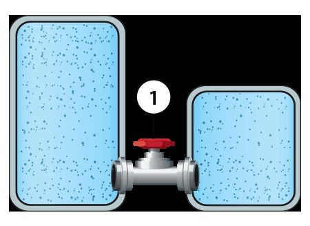 Найди, чему равно давление газа в сосудах, если открыть кран 1.