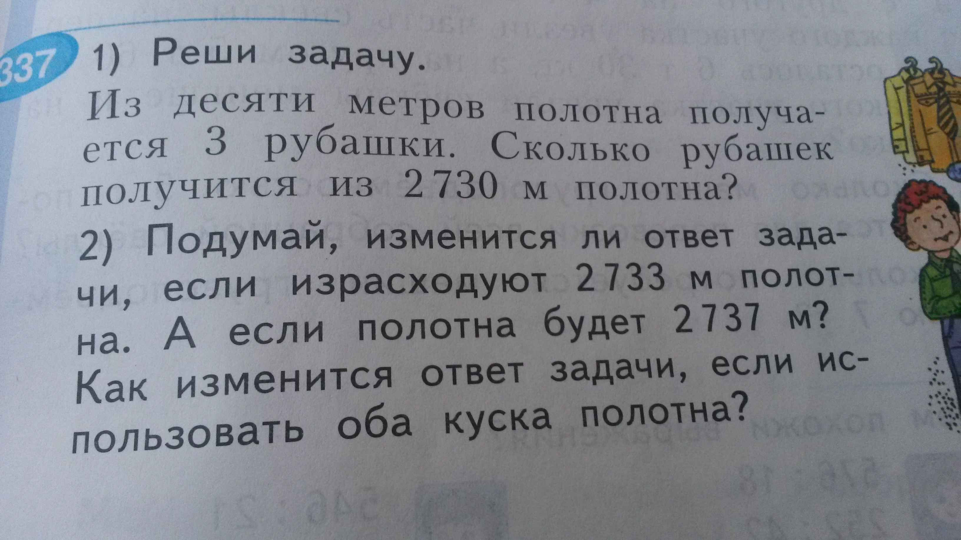 Ответ на вопрос : кол-во рубашек изменится если 2731,2737 метров полотна будет.